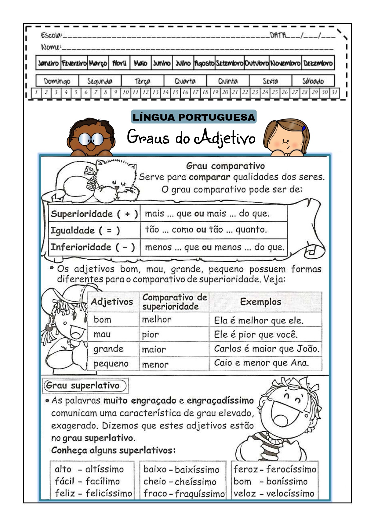 Questão 6: Onde encontrar materiais de qualidade sobre o grau do adjetivo para o 4º ano com gabarito?