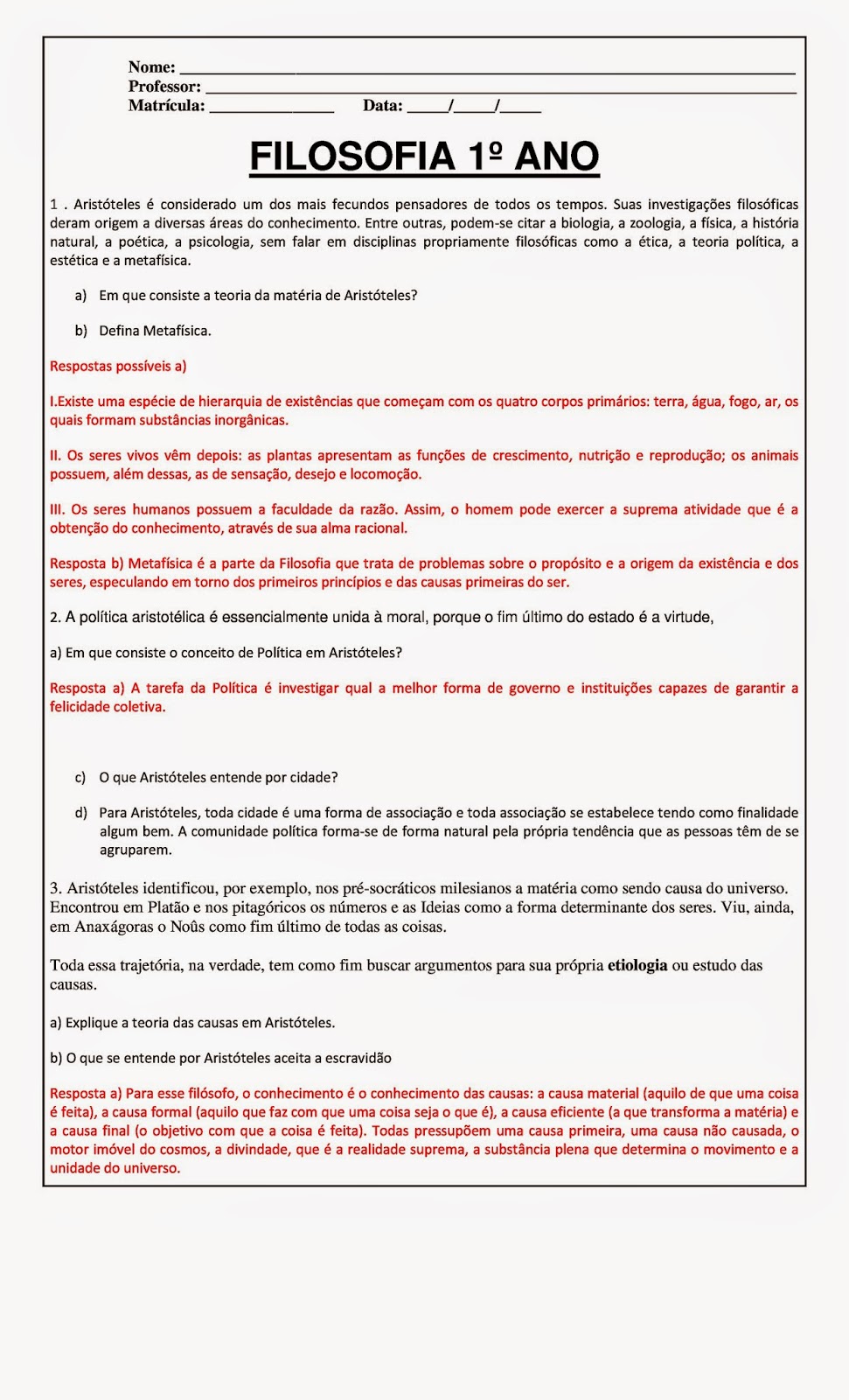 Prova De Filosofia 2 Ano Ensino Médio Com Gabarito - REVOEDUCA